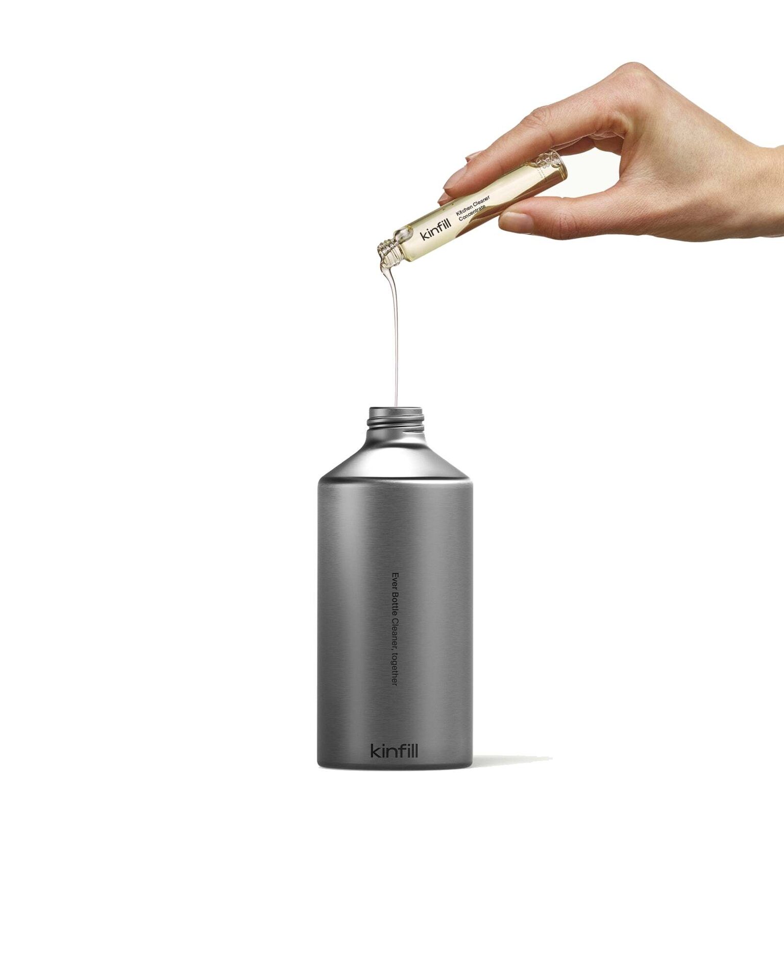 It’s easy to use: pour the contents of one concentrate tube into a reusable Kinfill Ever Bottle spray bottle, add water, close the cap, and shake. In an instant, you’ll have an effective cleaner in a stylish bottle that you don’t need to hide in a cabinet.