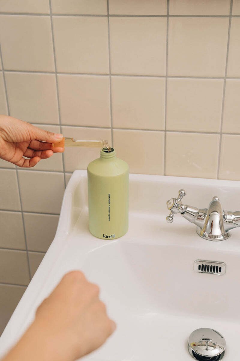 Kinfill Tub & Tile Cleaner concentrate makes cleaning your bathroom effective, stylish, and eco-friendly. The package contains two glass, fully recyclable concentrate tubes, which you can use to make two 500-ml bottles of ready-to-use cleaner.