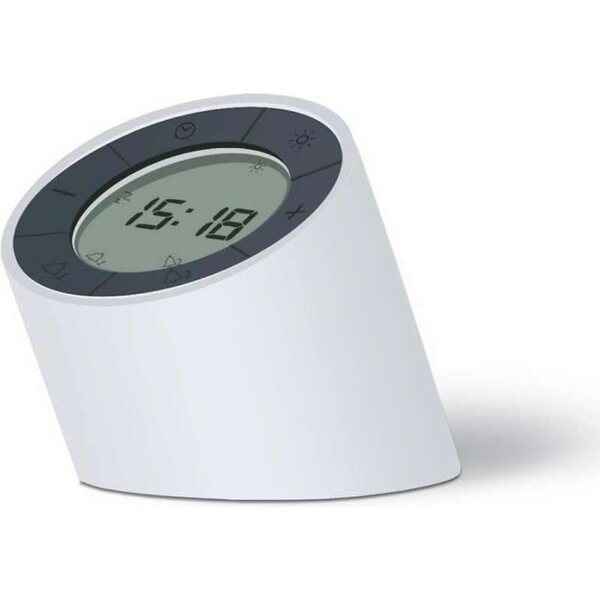 Edge Light Herätyskelloa on erittäin helppo käyttää ergonomisen suunnittelunsa ansiosta. Kellossa on sisäänrakennettu ladattava akku (mukana toimitetaan USB-lataussovittimen johto) kaksi hälytystä, joissa on torkkutoiminto ja himmennettävä pehmeä näytön valo, joten näet mukavasti vaikkapa yöllä ajan muiden unta häiritsemättä. Sammuta hälytys yksinkertaisesti kääntämällä kello ylösalaisin ja se muuttuu heti lämpimäksi pehmeäksi ja kodikkaaksi himmennettäväksi valoksi.
