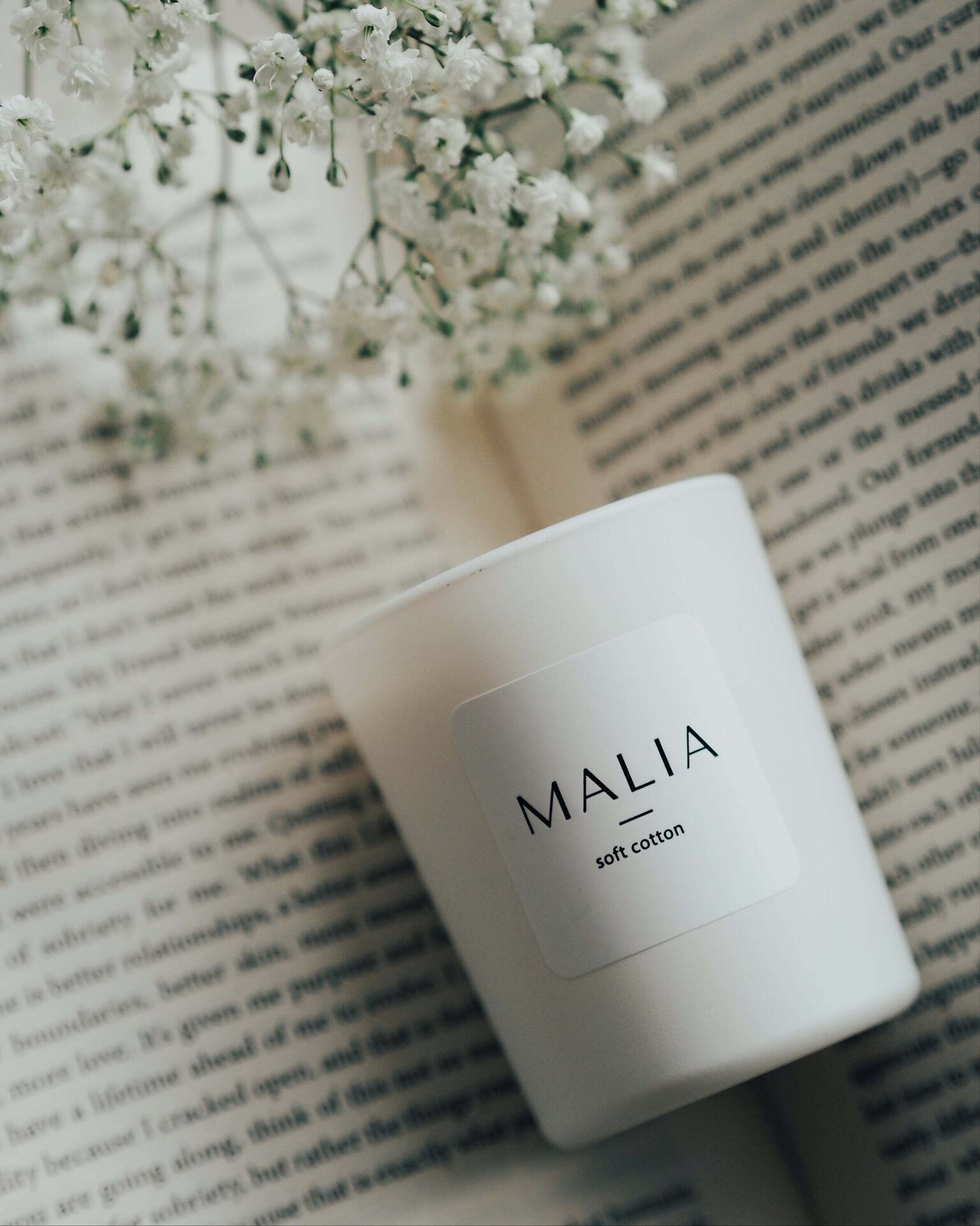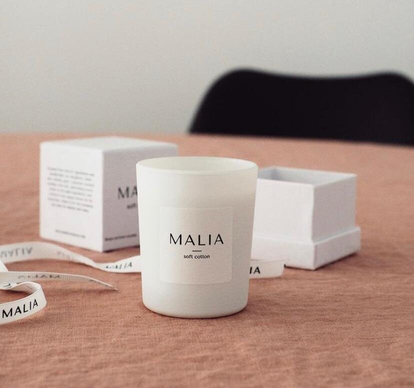 Luxury candles are hand crafted in France out of natural soy wax that is sustainably sourced from the USA and use cotton wicks. To optimise the scent and texture of Malia candles, the wax mixture contains a little bit of coconut wax and beeswax.