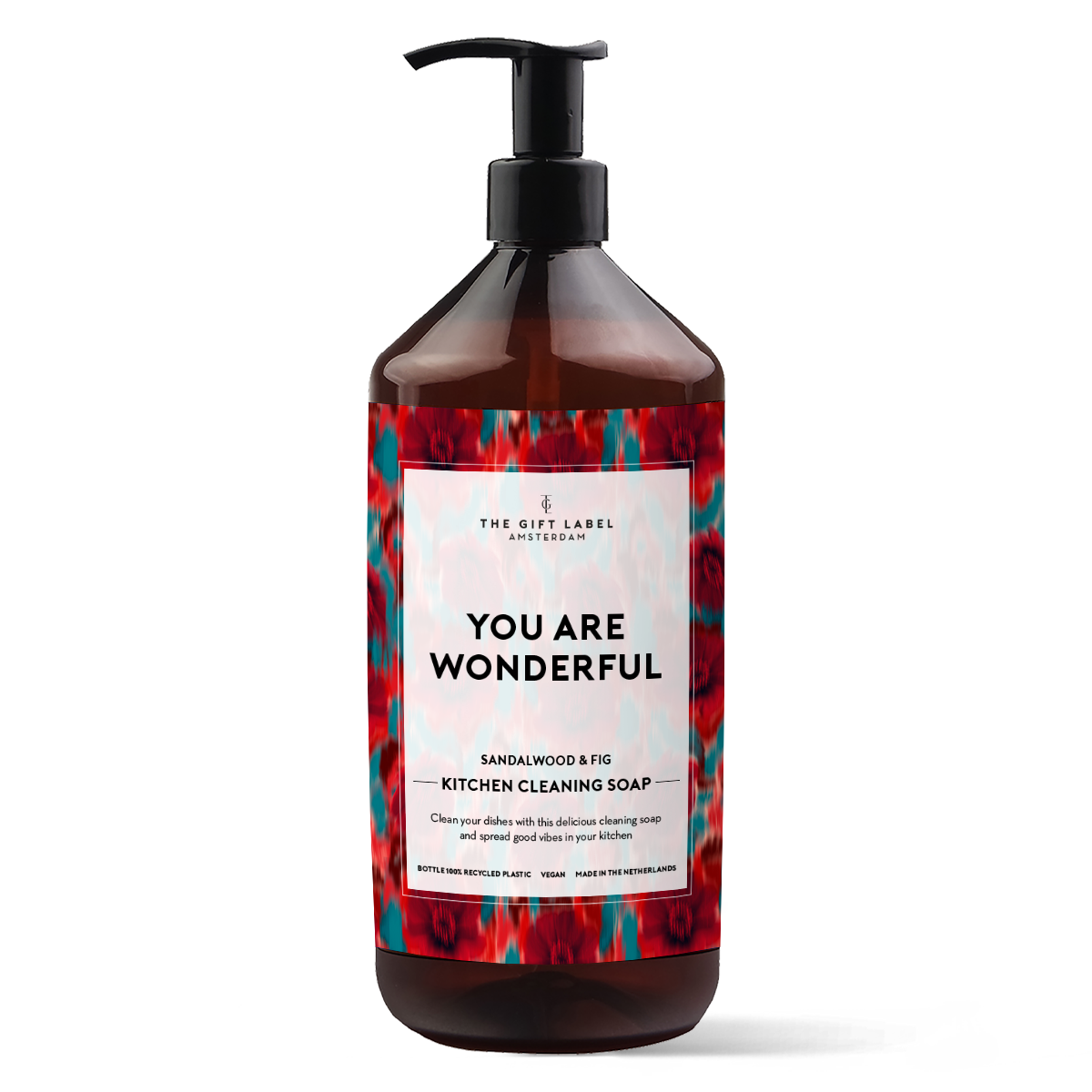 The Gift Label products have the same scent, but the label changes. This vegan dishwashing liquid smells delicious and contains no parabens, sulfates, or dyes. The bottle is made from recycled plastic. The biodegradable formula has a scent of sandalwood and fig.
