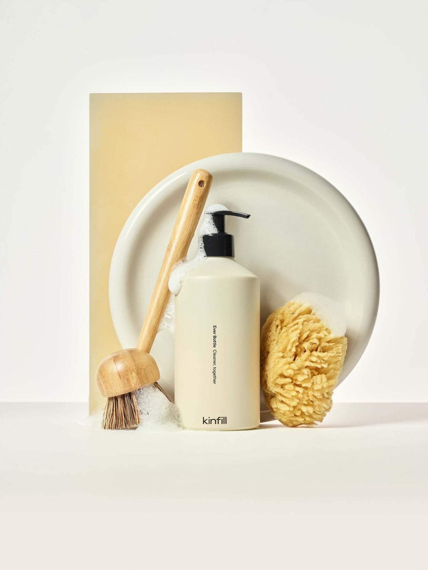 Easily refill the detergent into the reusable Kinfill Ever Bottle pump bottle and make your kitchen both stylish and sustainable.