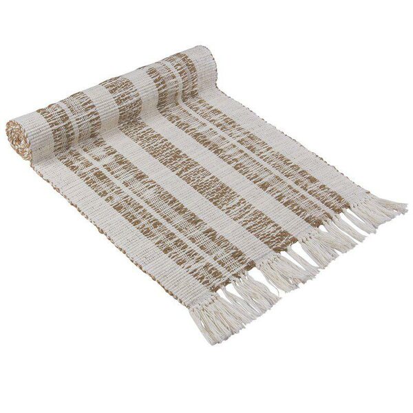 Fondaco's off-white Ariel runner with linen-coloured stripes. The rustic look is completed by fringes.