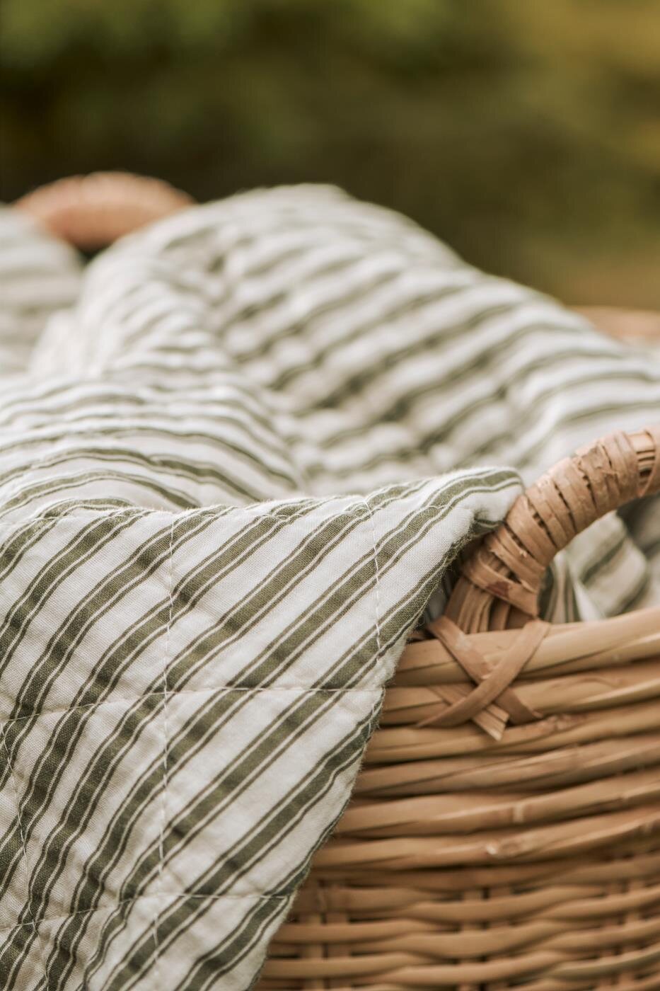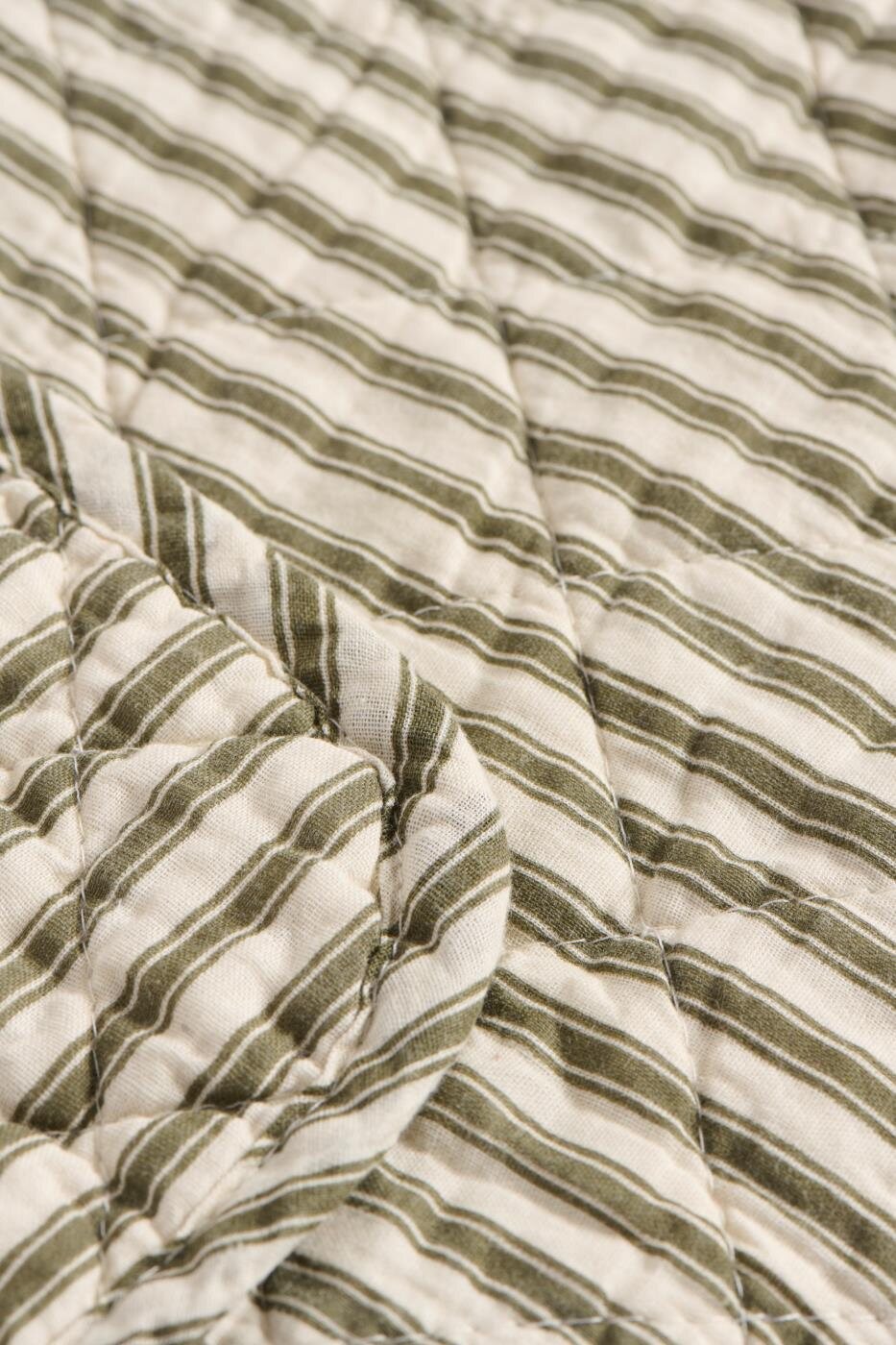 Ib Laursen's soft and light striped quilt keeps you warm and cosy. An quilted cotton blanket with olive green and sand stripes can be a calming element in a colourful home or a splash of colour in a Scandinavian interior - this quilt is a real all-rounder!