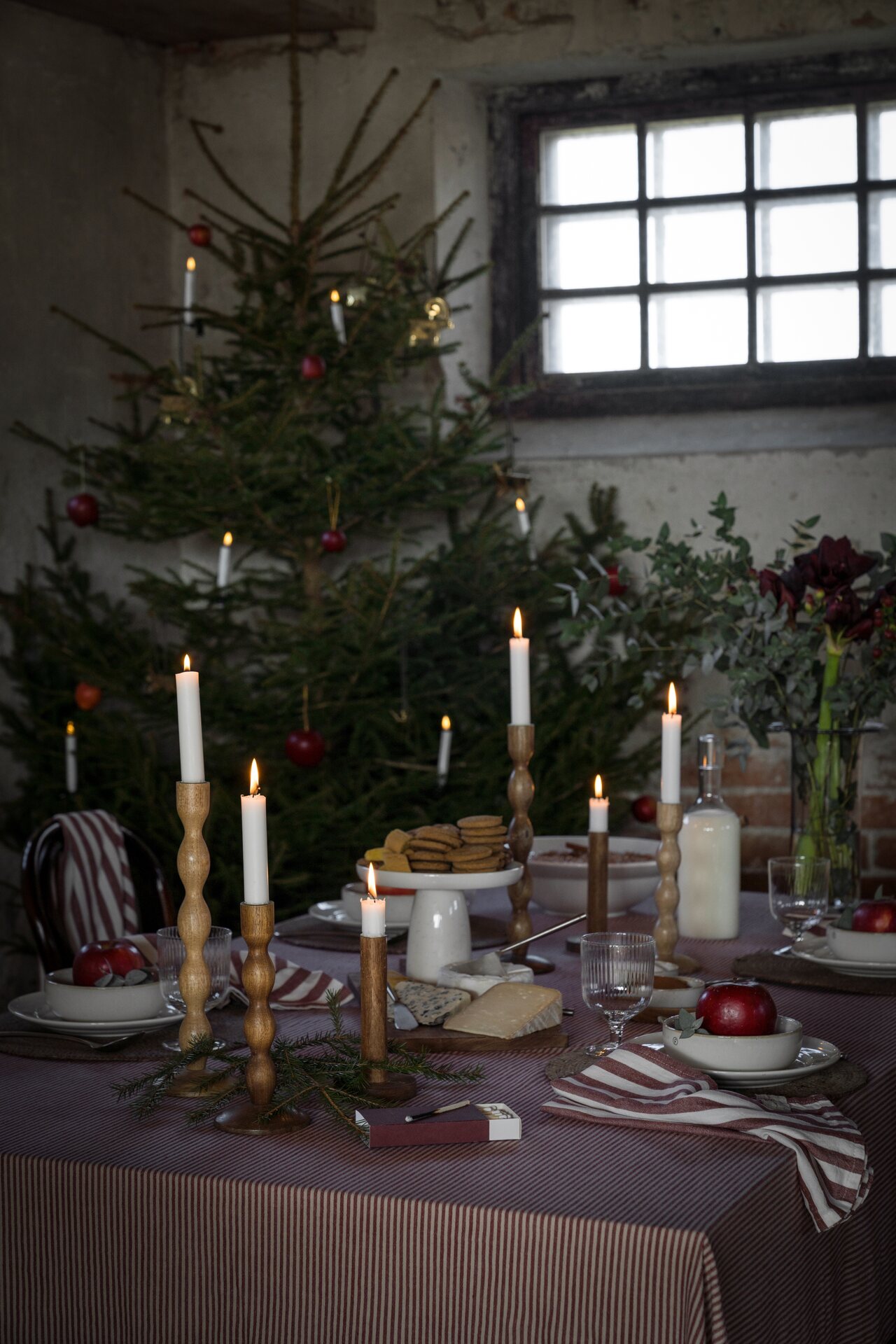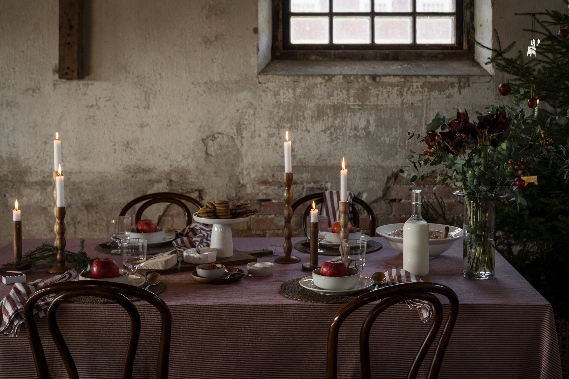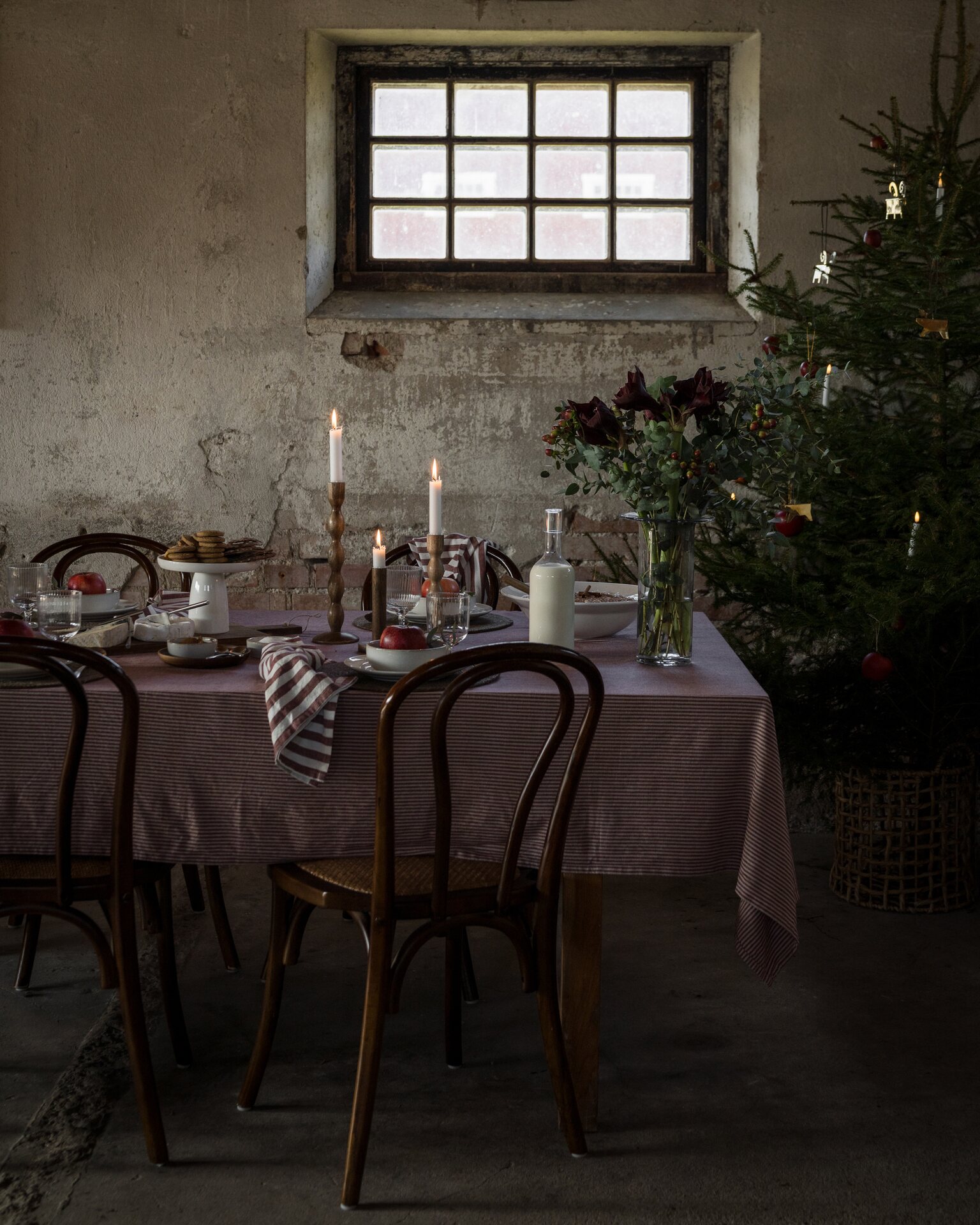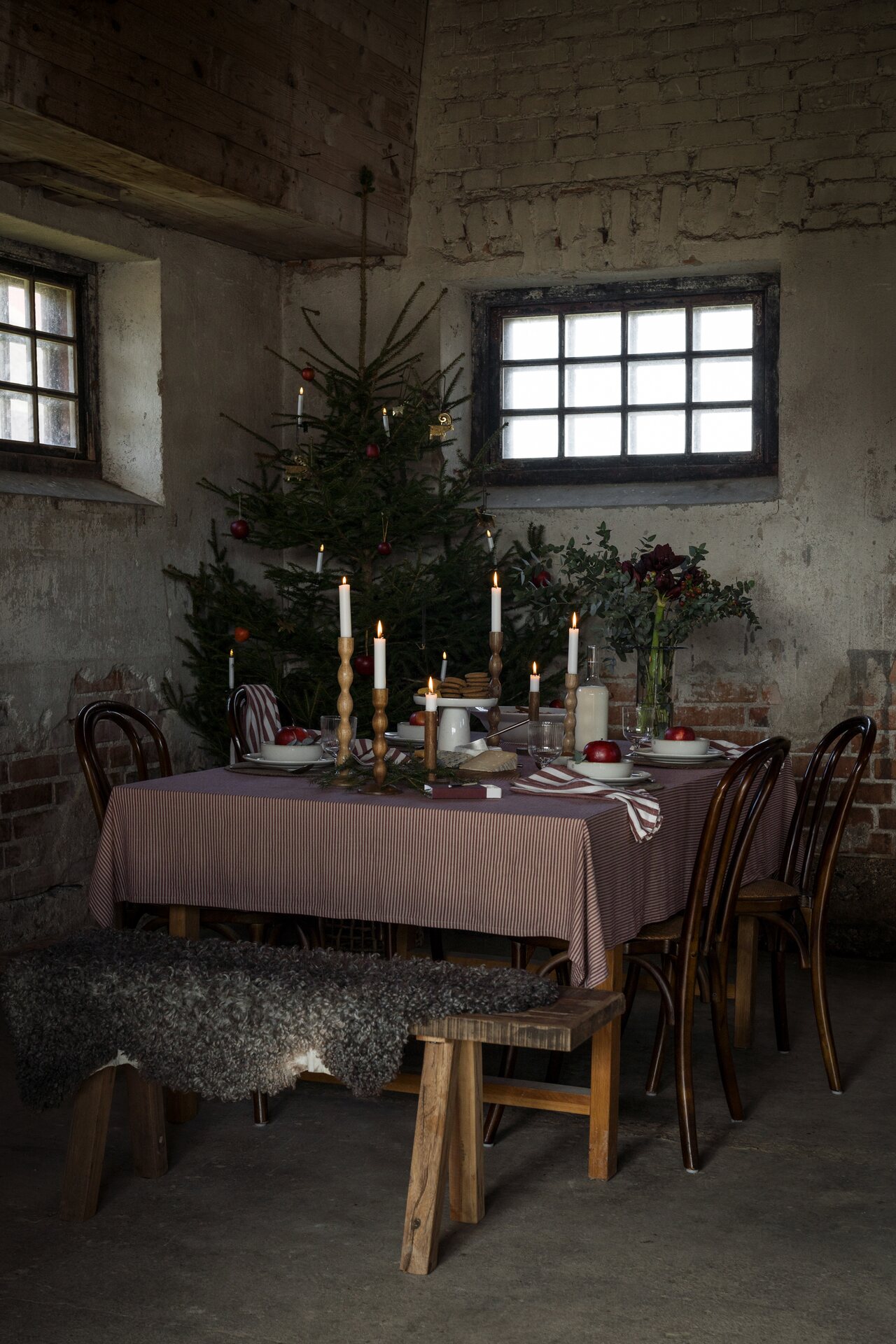 ERNST's striped tablecloth creates a cosy atmosphere and welcomes family and friends to the table. The striped tablecloth is suitable for both modern and traditional home settings. This narrow-striped tablecloth is made of cotton.