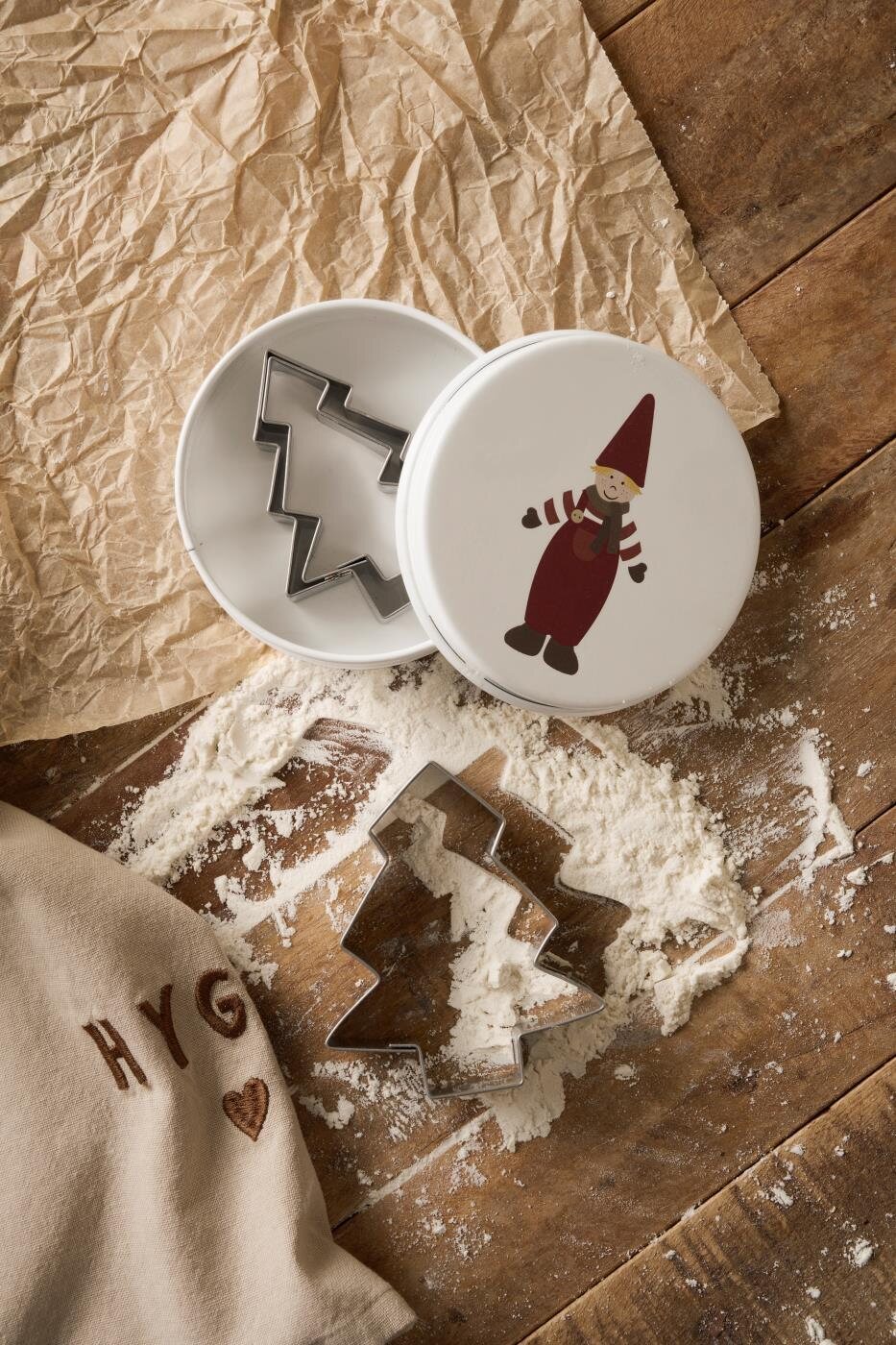 Ib Laursen's fir-shaped cookie cutters are packaged in a beautiful tin box. The box contains three gingerbread moulds of different sizes and has a Christmas elf on the lid. The gingerbread cutters in a tin box are a nice idea for a Christmas present!