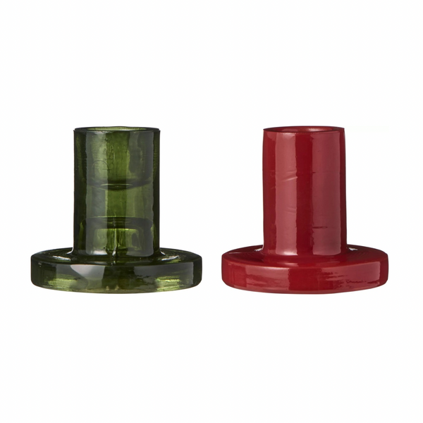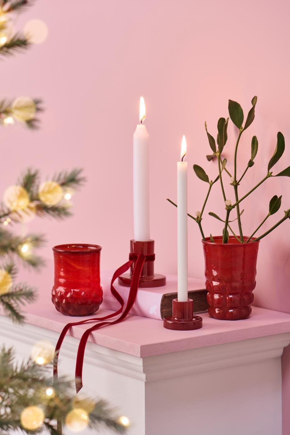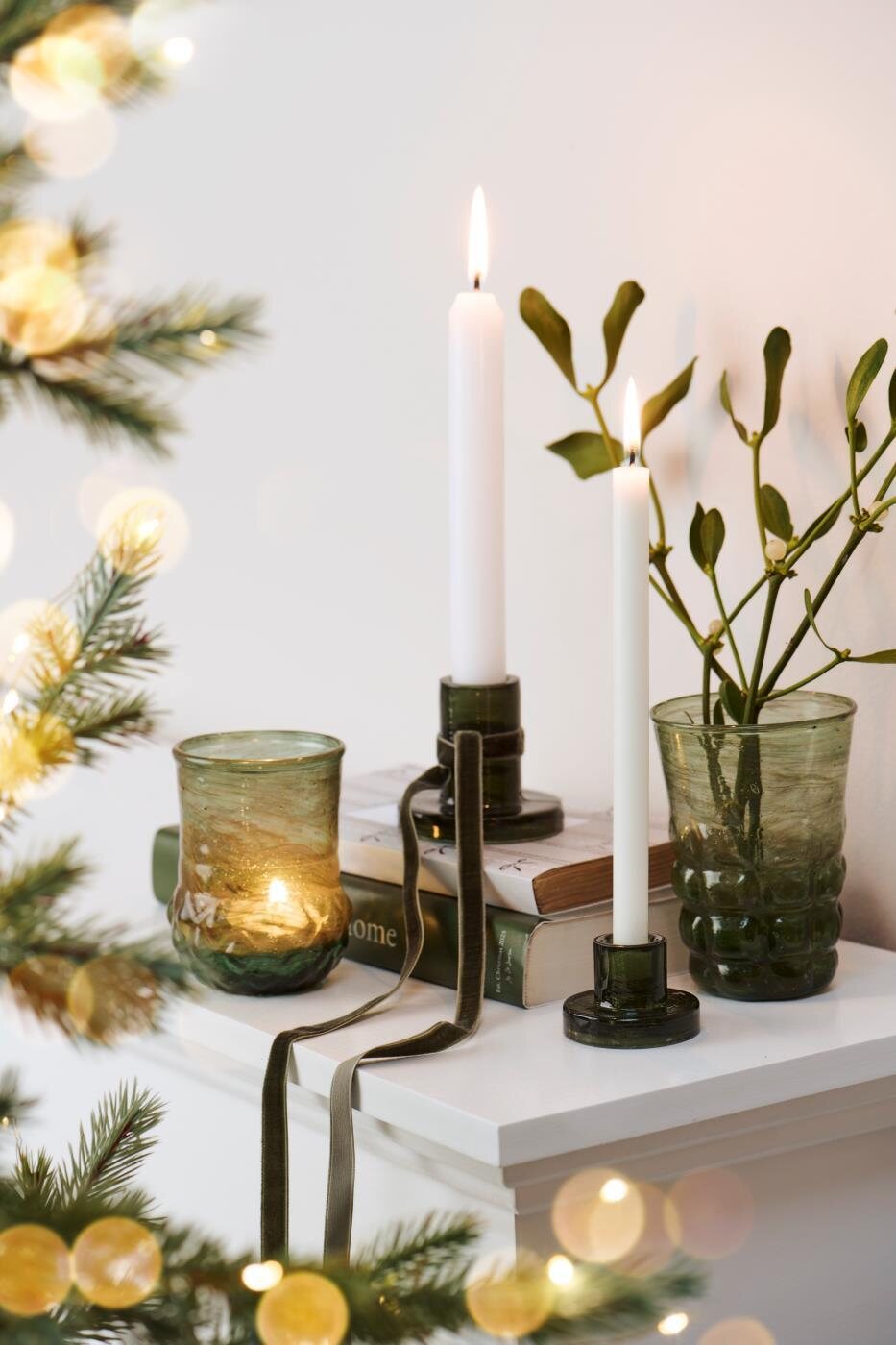 Ib Laursen's simple and elegant glass candlestick creates a festive atmosphere around it. The brightly coloured candlestick is beautiful on its own or in larger groups. This low glass candlestick is suitable for crown candles.