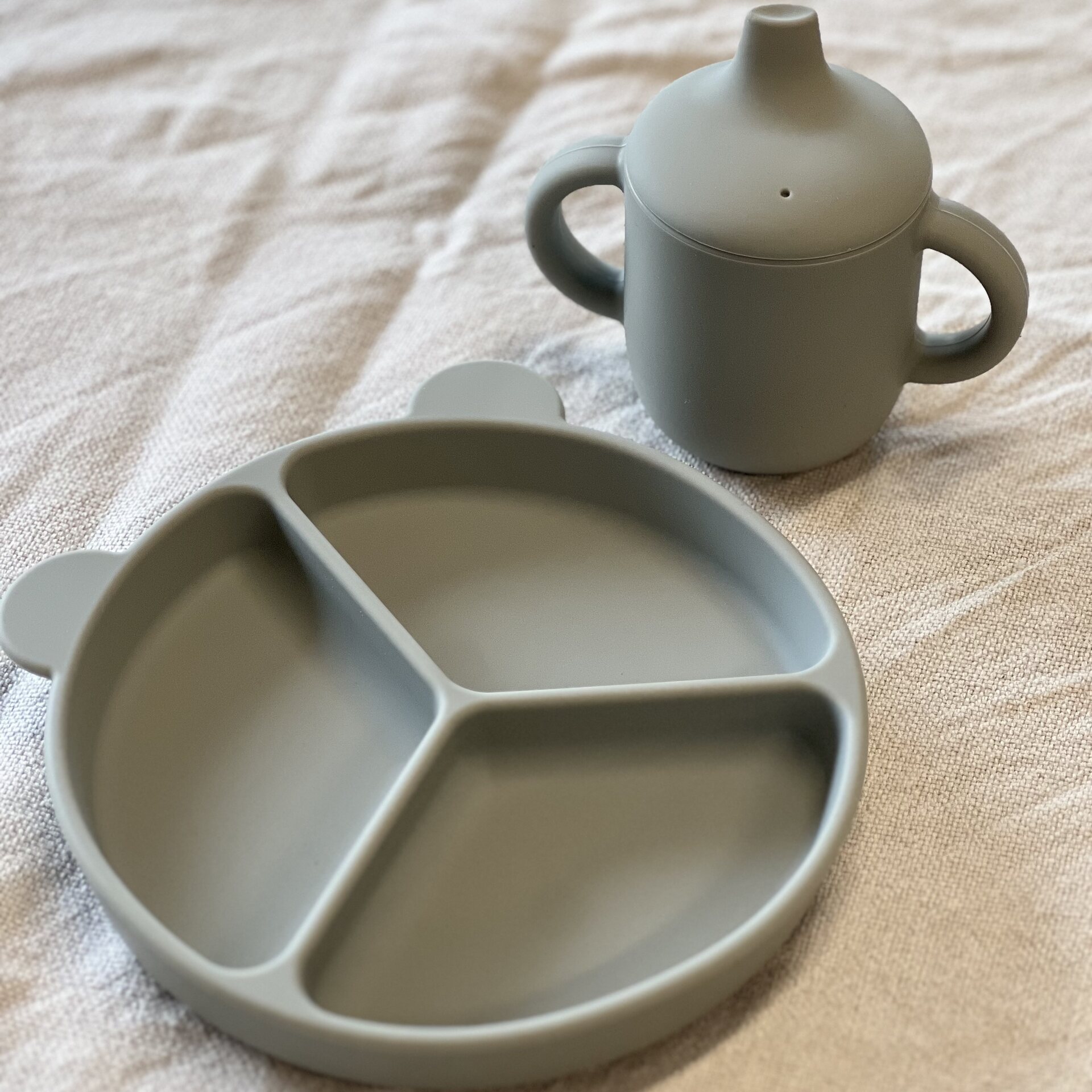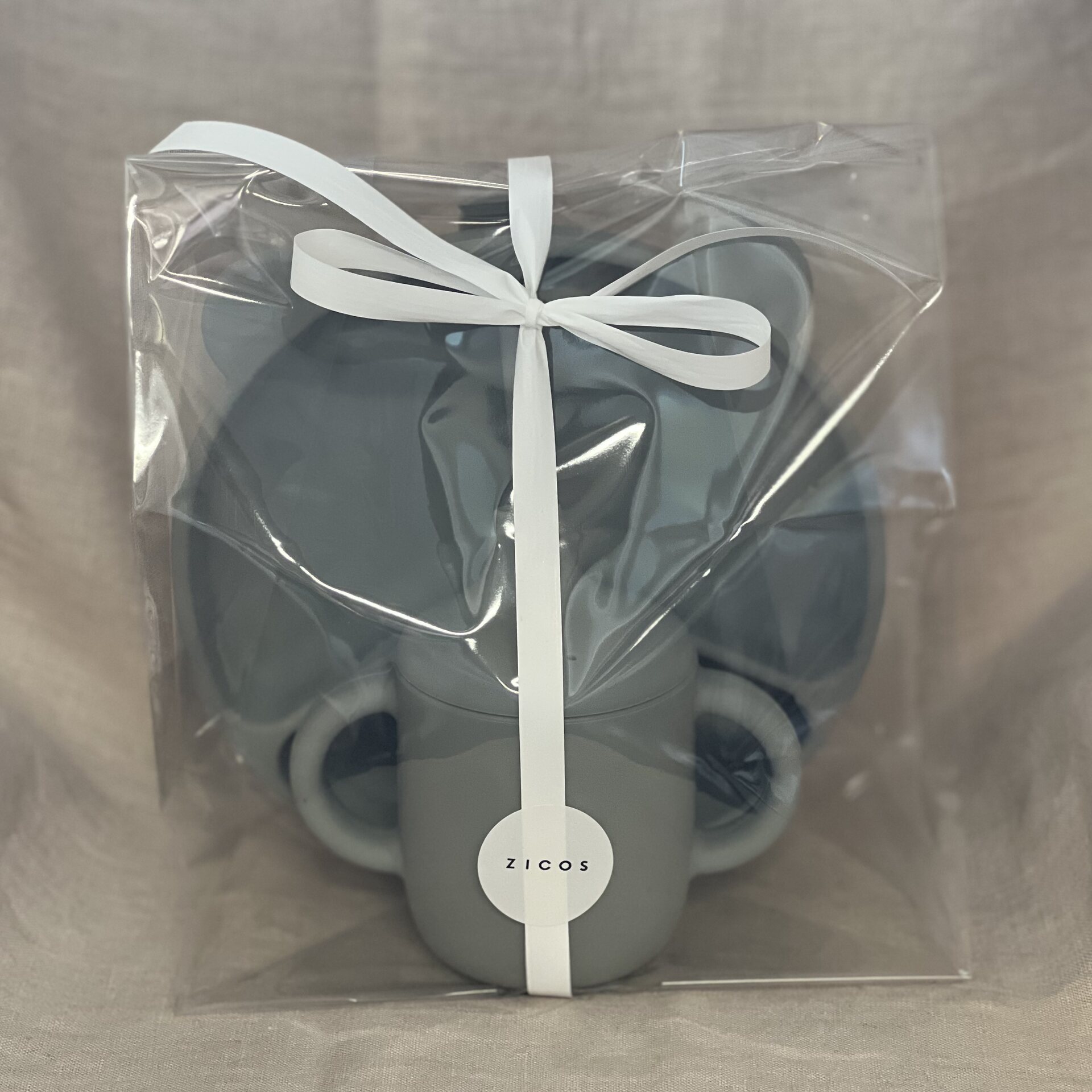 Lahjapakkauksessa tulee äitien hehkuttama Liewoodin Stacy lautanen dove blue sävyssä sekä Neil nokkamuki dove blue sävyssä.