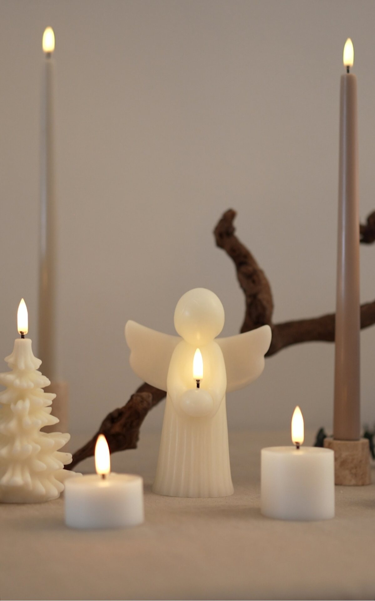 With the angel-shaped LED candle, you can bring the safe and inviting charm of candles into your home, as it has a flickering candle flame. The candle looks truly authentic, as it is hand-coated with paraffin wax. The candle flame is a warm white color and moves very realistically (patented 3D flame).