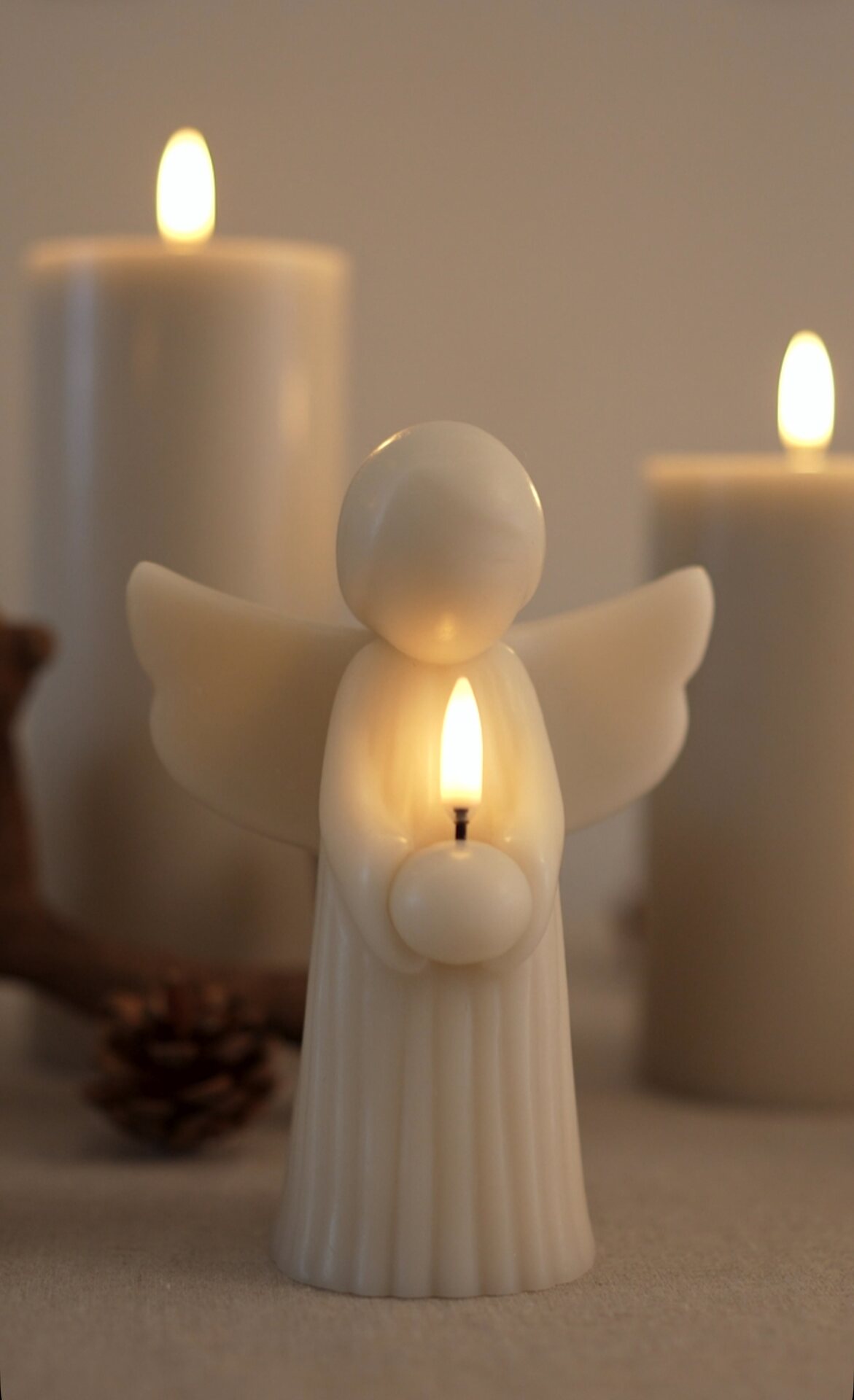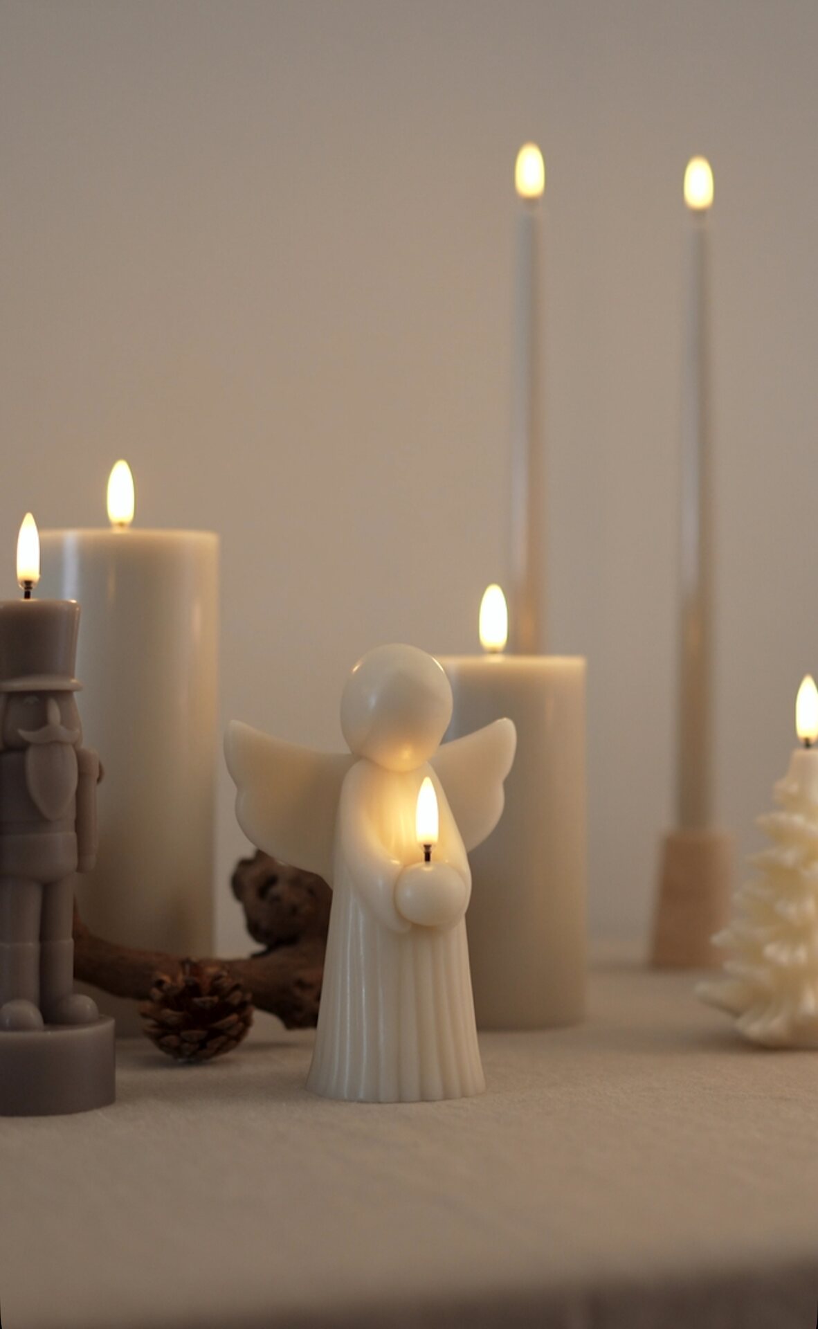 With the angel-shaped LED candle, you can bring the safe and inviting charm of candles into your home, as it has a flickering candle flame. The candle looks truly authentic, as it is hand-coated with paraffin wax. The candle flame is a warm white color and moves very realistically (patented 3D flame).