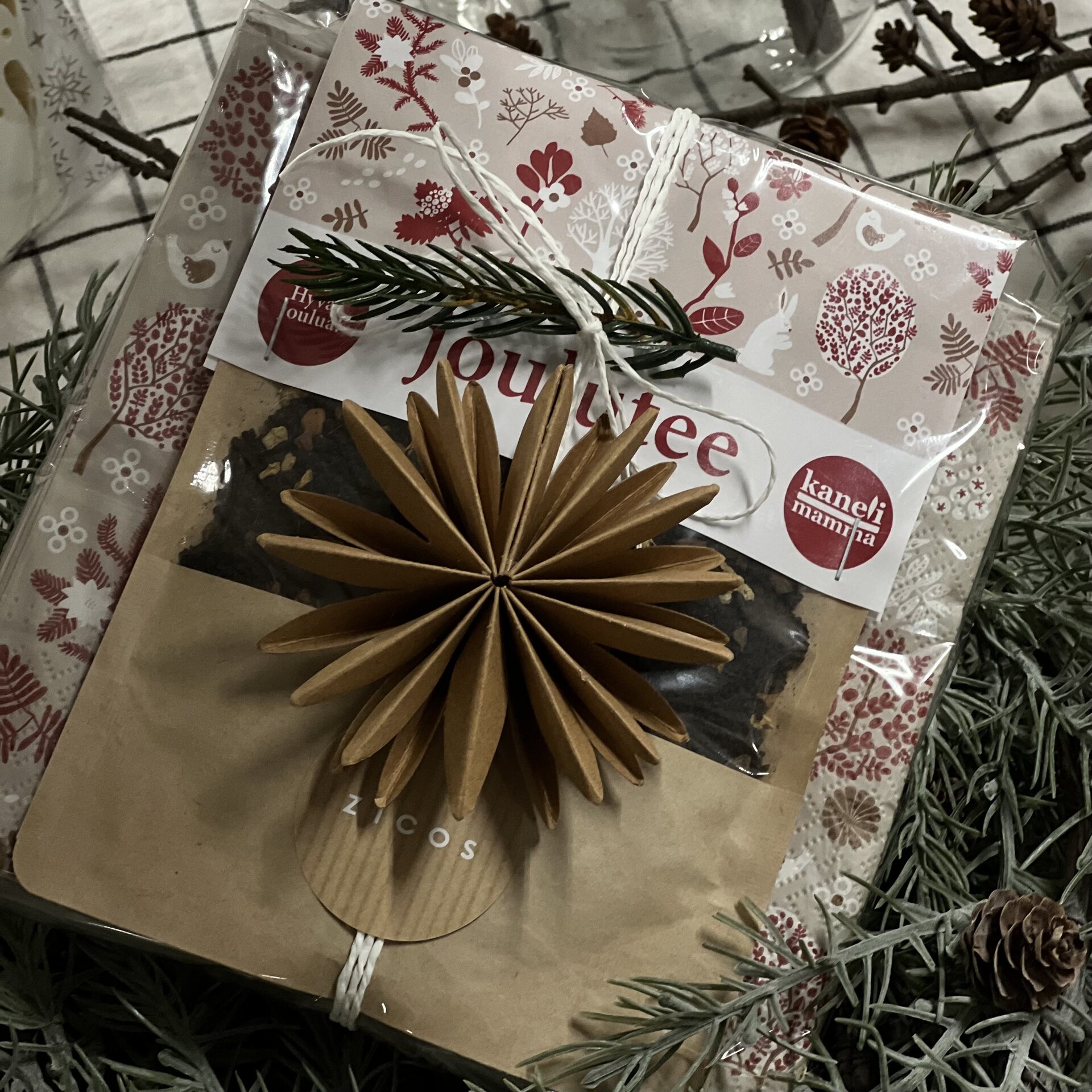 Kanelimamma joulutee ja servetit lahjapakkaus