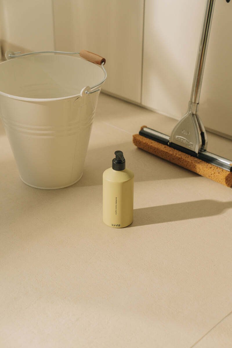 The versatile pump bottle is ideal for Kinfill products such as laundry detergent, dish soap, floor cleaner, and body wash. One bottle—many uses.