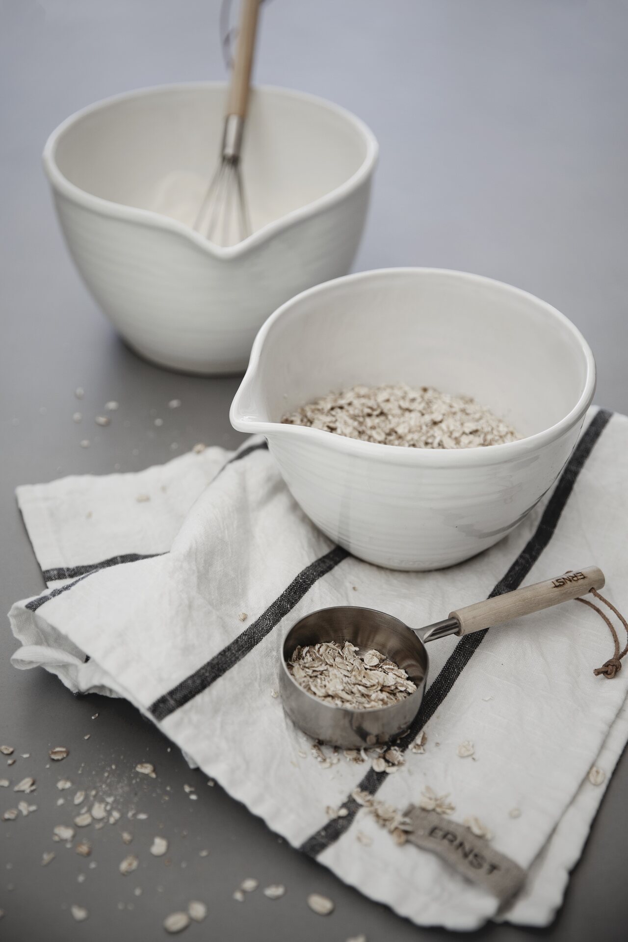 Ernstin kauniin valkoisen taikinakulhon kanssa leipominen on entistä hauskempaa. Kulho kestää mikron ja konetiskin.
