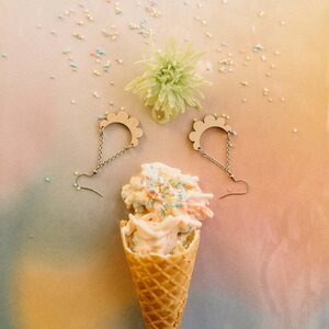 Maanantaimallin korut suunnitellaan ja valmistetaan Suomessa. Korvakorut lähetetään kauniissa lahjarasiassa.