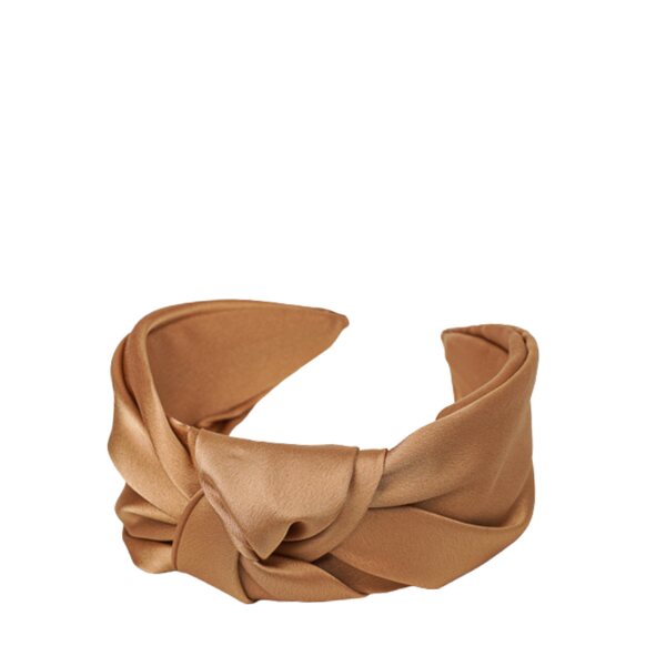 Tyylikäs, kiiltävästä satiinista valmistettu kullanvärinen Joelina-hiuspanta solmulla sopii niin arkeen kuin juhlaankin.