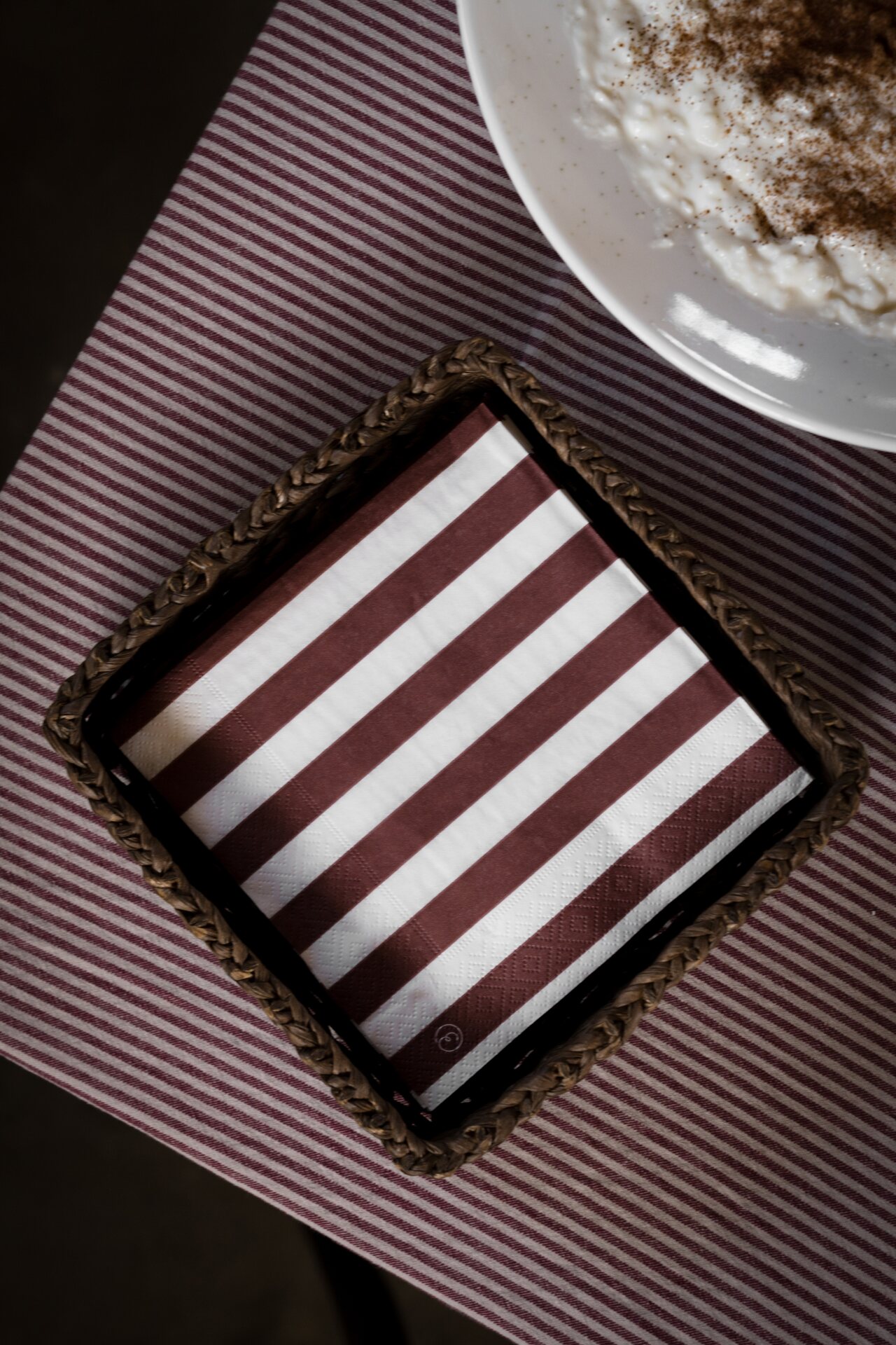 ERNSTin klassisen raidalliset paperiservetit sopivat sekä arkeen että juhlaan, ympäri vuoden. Punavalkoiset servetit on kiva antaa myös lahjaksi.
