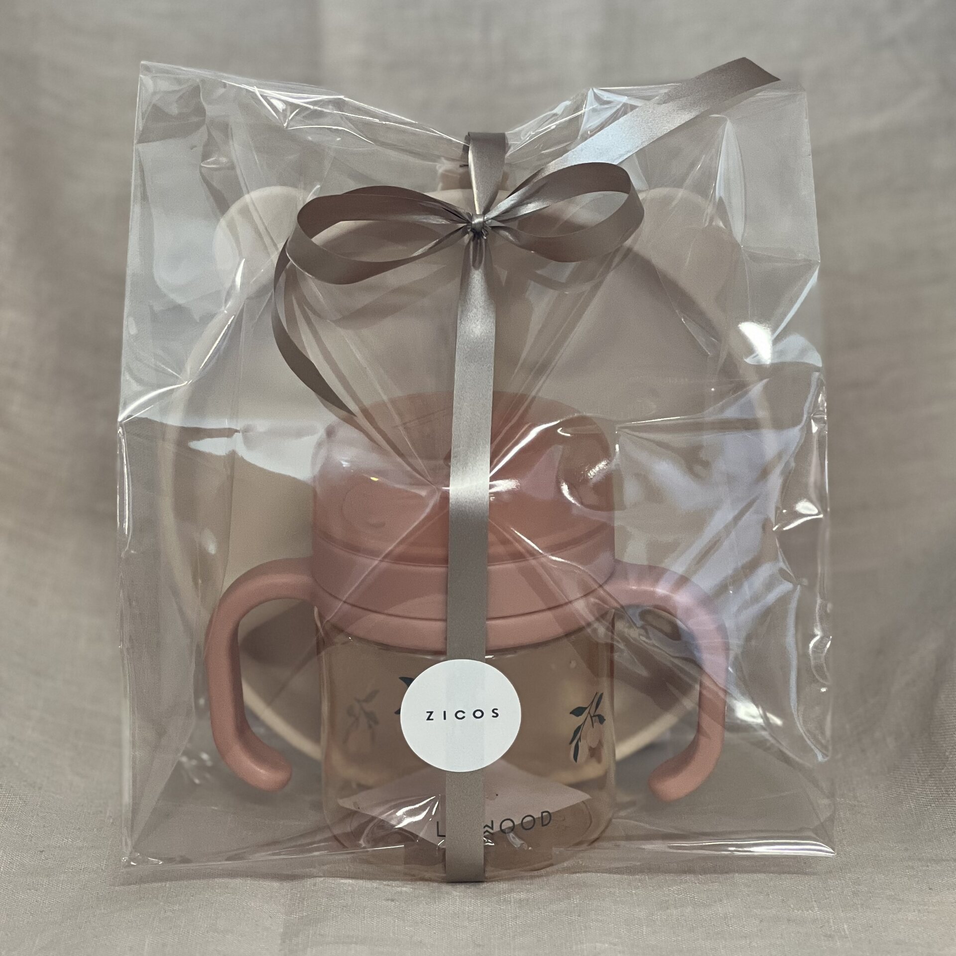Lahjapakkauksessa tulee äitien hehkuttama Liewoodin Stacy lautanen apple blossom sävyssä sekä Kylo nokkamuki peach/sea shell sävyssä.