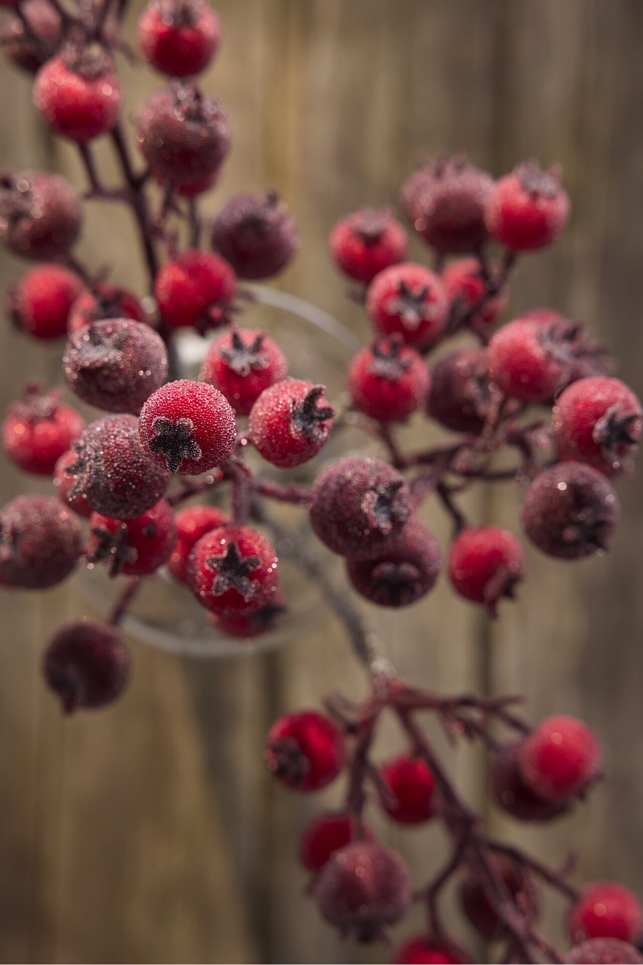 Mr Plantin huurteinen ruusunmarjaoksa sopii erilaisiin asetelmiin ja vaikka havujen joukkoon.