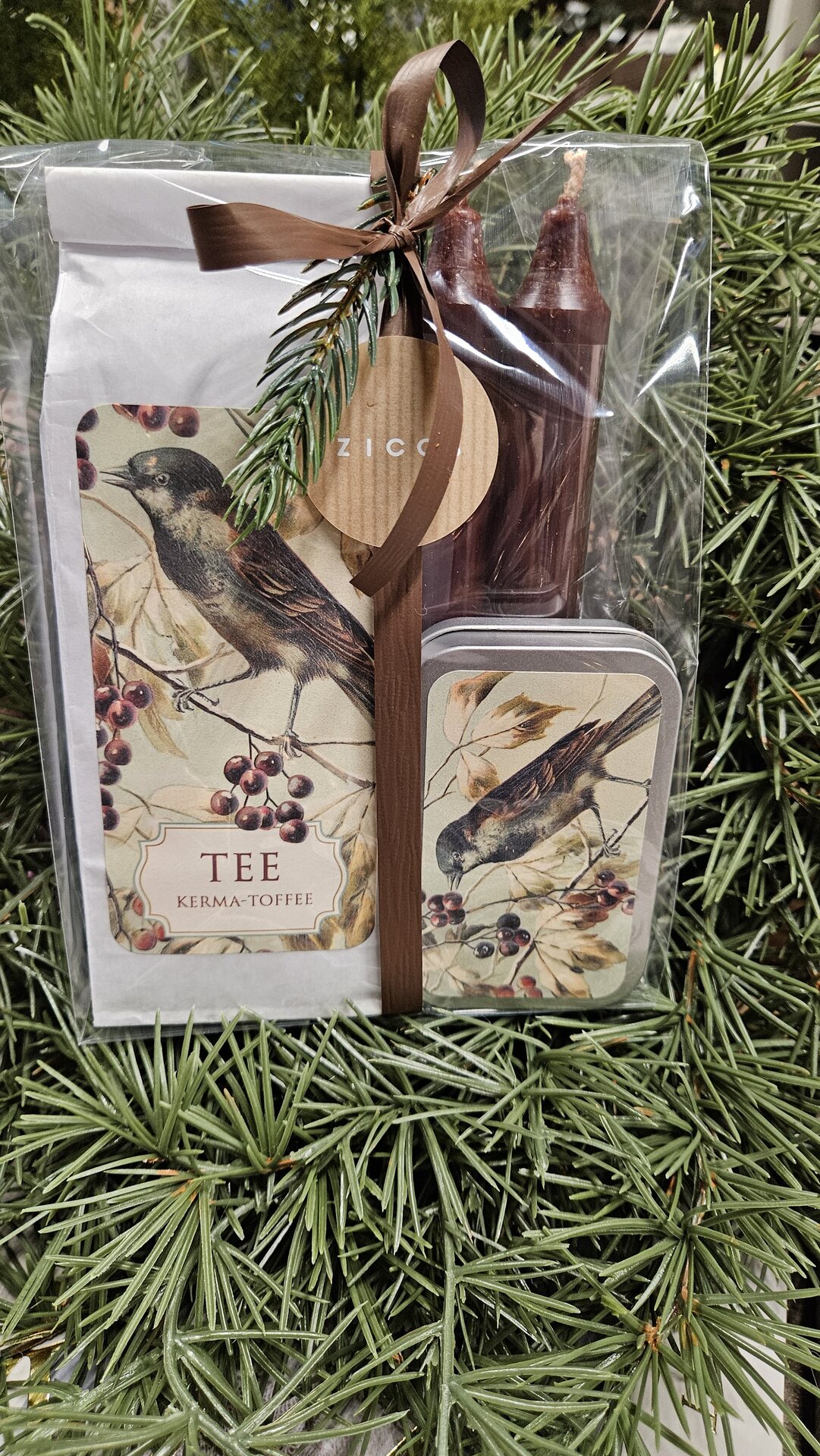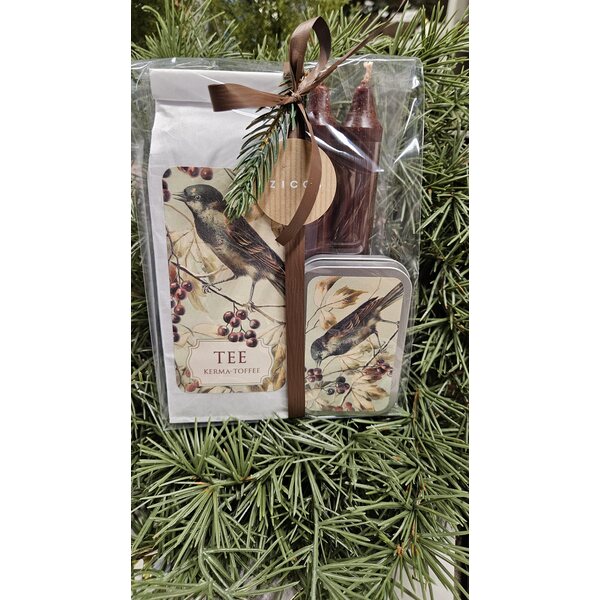 Lahjapakkaus tee ja pastillit kerma-toffee, lintu