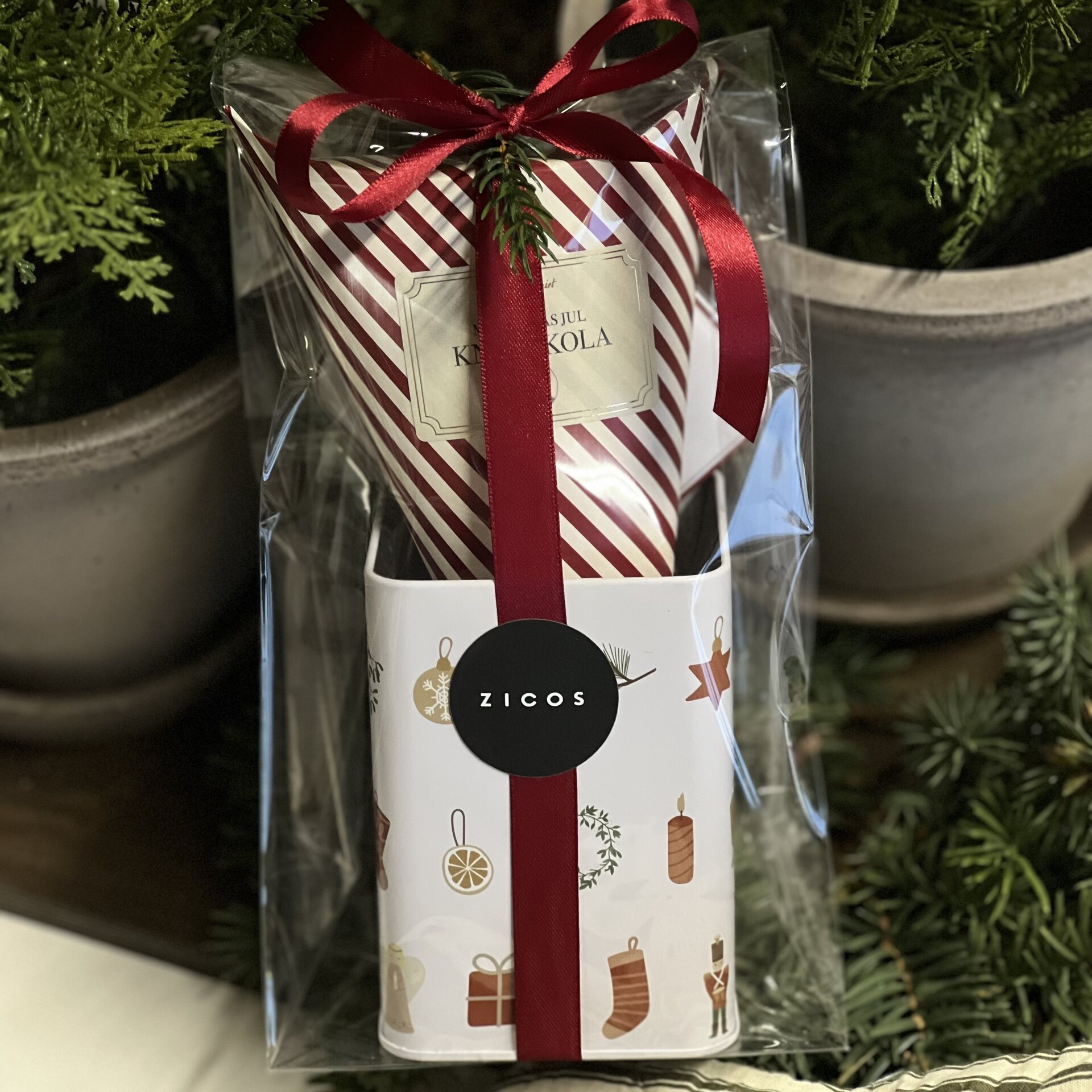 Lahjapakkaus nekkutoffeet ja metallipurkki
