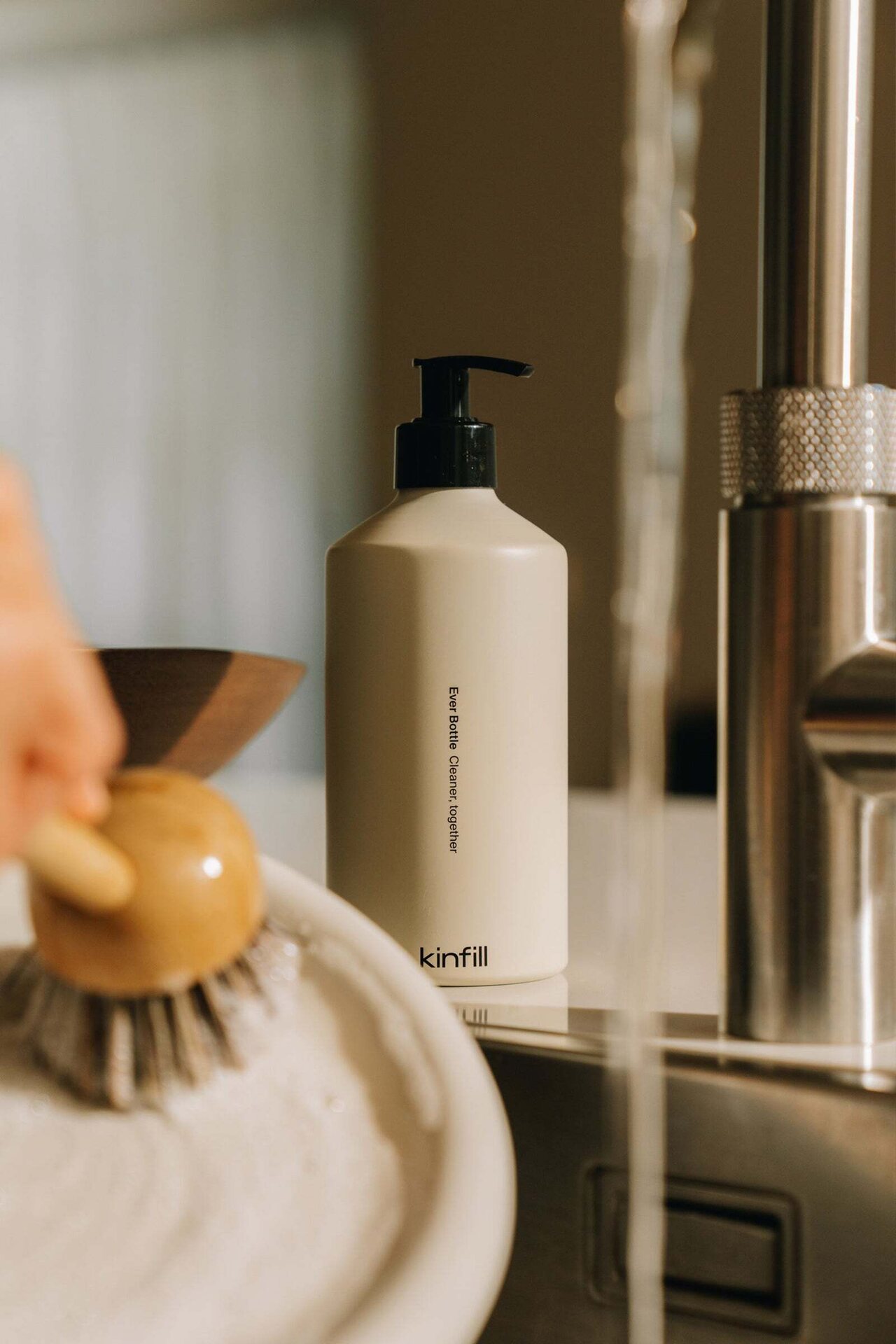Monikäyttöinen pumppupullo sopii erinomaisesti Kinfillin tuotteille, kuten pyykinpesuaineelle, tiskiaineelle, lattianpesuaineelle (Floor Cleaner) sekä vartalonpesuaineelle (Body Wash). Yksi pullo – useita käyttötarkoituksia.
