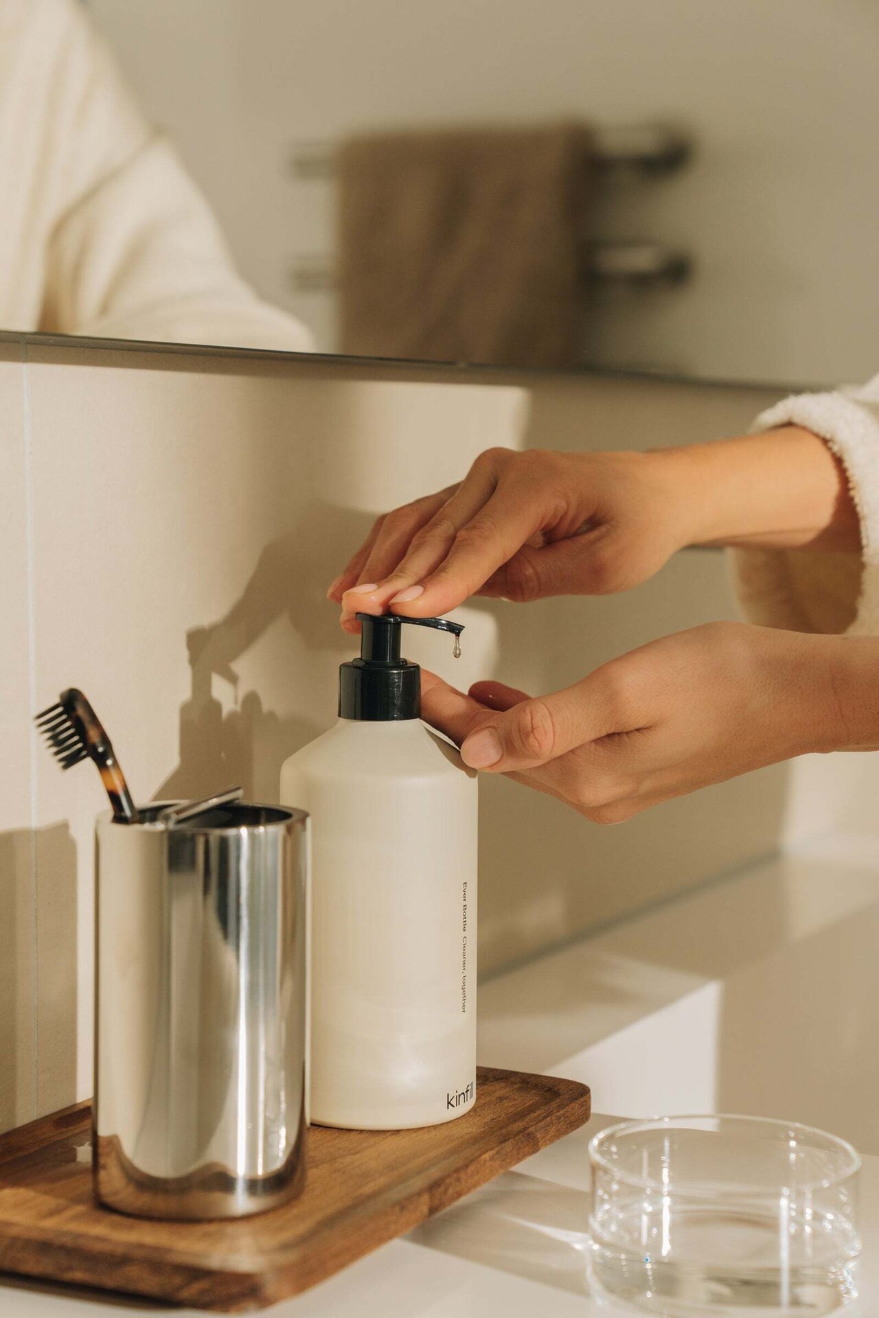 Kinfill Ever Bottle Pump on laadukas ja pitkäikäinen 500 ml alumiininen pumppupullo, joka yhdistää tyylikkään muotoilun ja ekologisen ajattelun. Tämä uudelleentäytettävä pullo on suunniteltu vähentämään muovijätettä ja tuomaan arkeen kestävää käytännöllisyyttä.