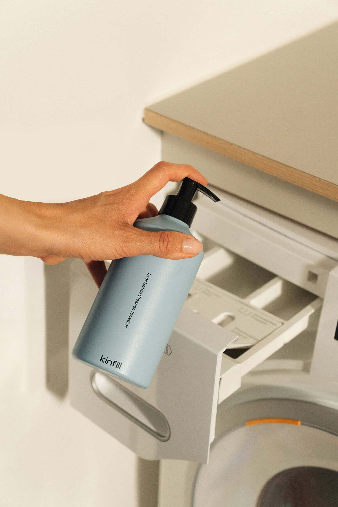 Monikäyttöinen pumppupullo sopii erinomaisesti Kinfillin tuotteille, kuten pyykinpesuaineelle, tiskiaineelle, lattianpesuaineelle (Floor Cleaner) sekä vartalonpesuaineelle (Body Wash). Yksi pullo – useita käyttötarkoituksia.